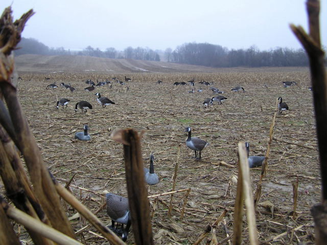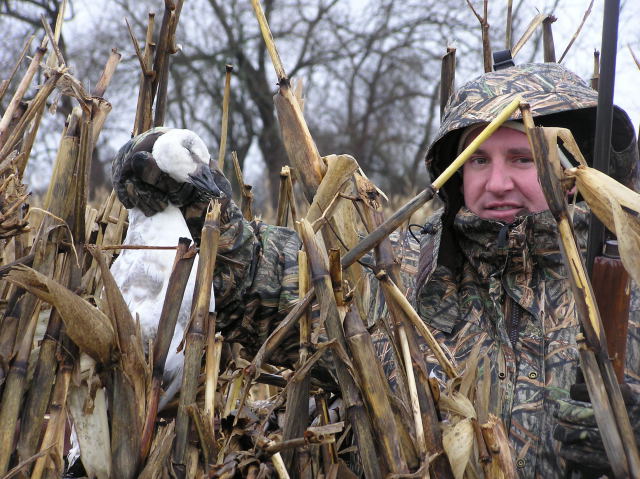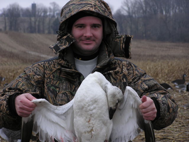 On January 23 we went out for a combo hunt in the rain- meaning we were going for Snow Geese and Canadian Geese. Despite seeing hundreds of geese, only one solo snow goose came into our decoy spread and Jon nailed him with a single shot. Unfortunately that was the only shot of the day. On day 2 we had a lot more sun and a lot more geese. We easily saw a few thousand geese with many coming to check our spread but not wanting to commit to landing. We passed on 2 that came within 15 yards of us in hopes that their 7 friends would join them. The 7 flared off and the other two swiftly followed without a shot from us. About 20 minutes later another group of 6 came in. As soon as we heard "take 'em" Mike dropped a big Canada and despite Jon emptying the gun on the others they were only tickled as a few feathers fell to the ground.