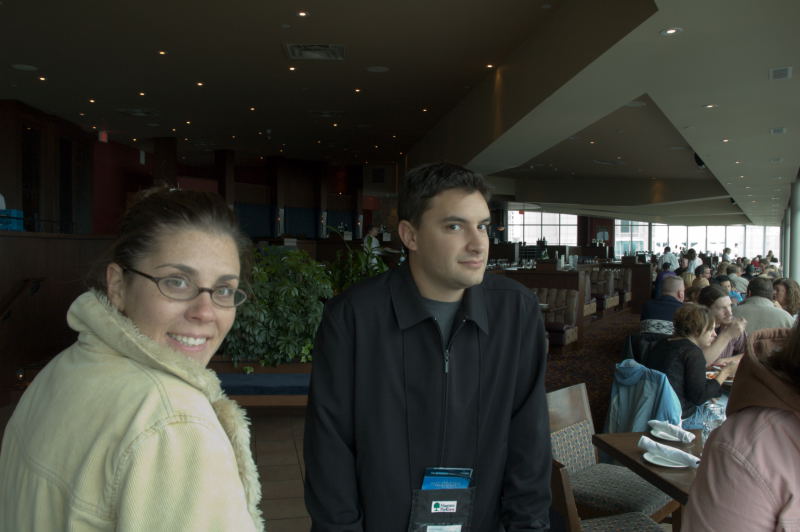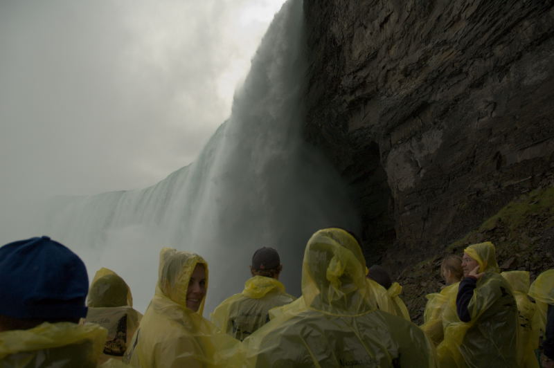 We rolled up to Canada on a rainy Saturday morning and checked into a real nice Doubletree which I later found out is owned by my boss' mother's cousin. Small world. We were just a few blocks away from the falls and the action of downtown. On our first day we did the Journey behind the falls, worth every bit of 10 bucks unless you are from Victoria. Then we ate at a steakhouse called The KEG which overlooks the falls. We rounded out the evening with world renowned impersonator Andre Phillipe Gagnon. He sucked. After the show we went to check out the falls illuminated with colored lights. All of us except for Kim who stayed back in the room to think about her choice to have a few extra glasses of wine at dinner. ........................